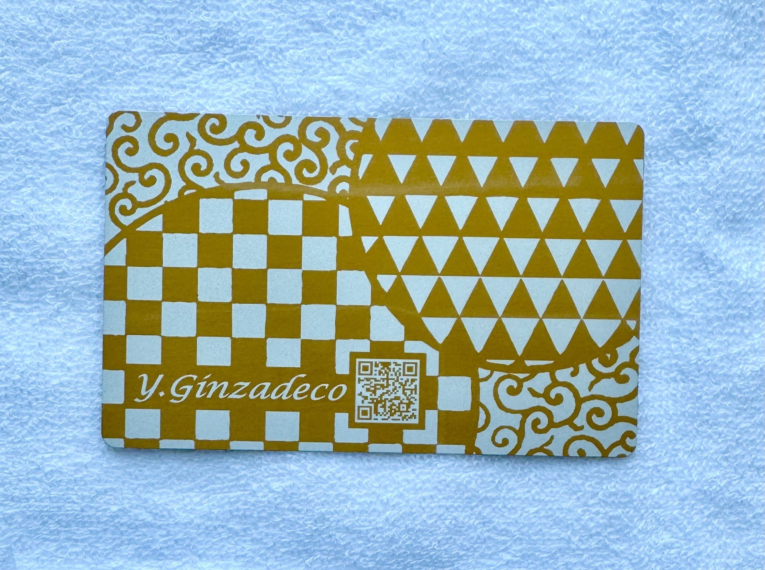 表面には、同工房のトレードマークであるメタルヤモリのブローチを付けました。皆様の金運向上を祈念し、縁起の良い色を施すとともに、目にスワロフスキーを入れてます。