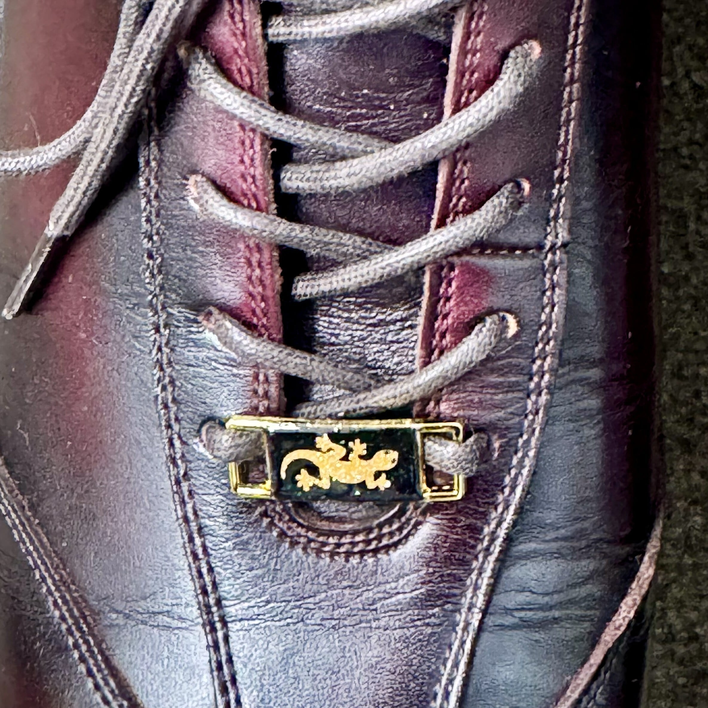 シューズプレート(スニーカープレート)は、横約3㎝、縦約1㎝で、足元のワインポイントとして最適です。