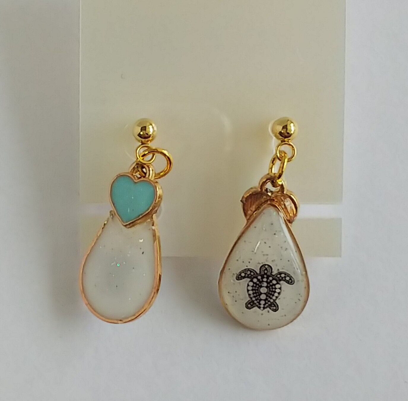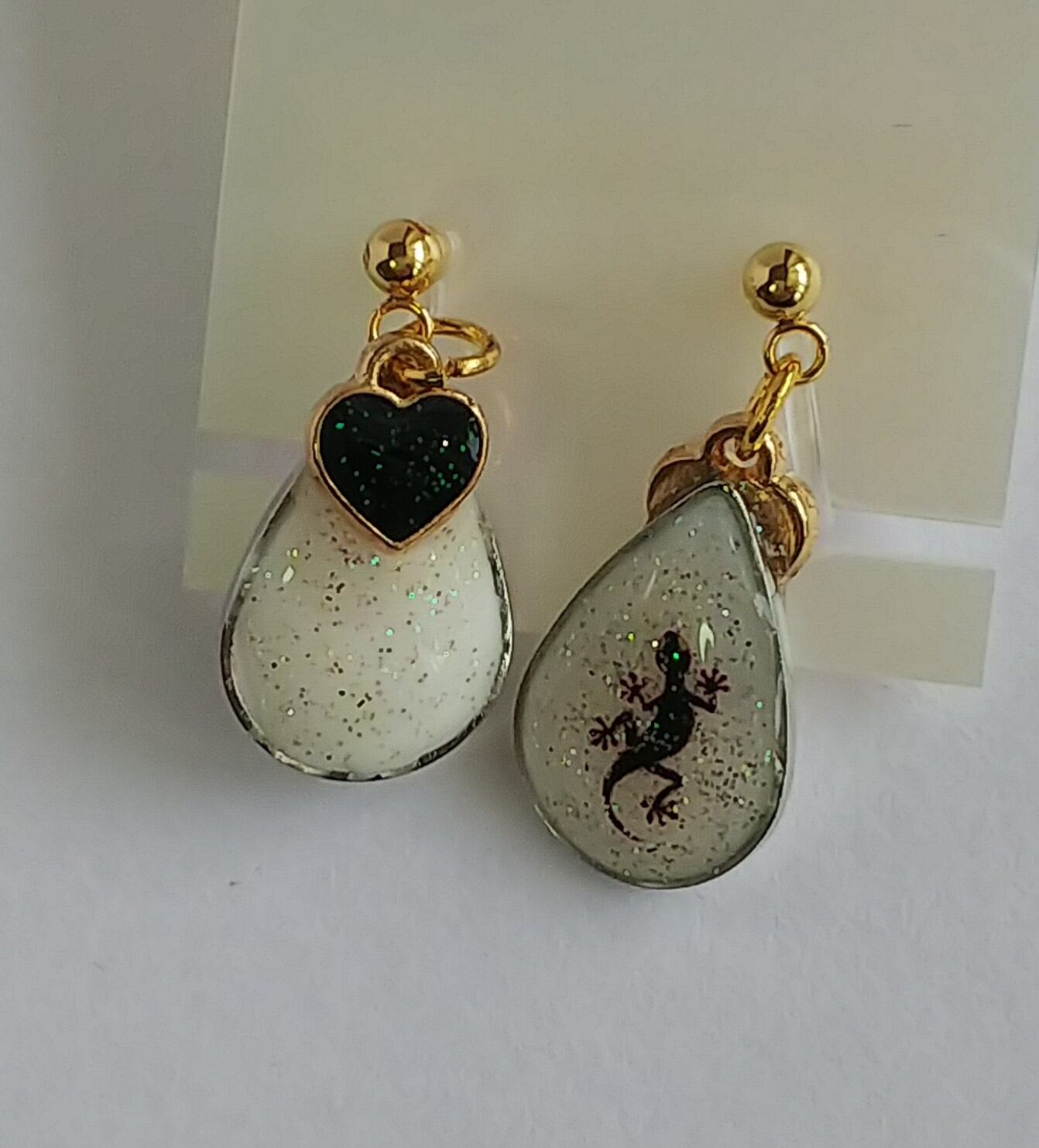 ヤモリ、コウモリ、カメをモチーフにしたイヤリングです。ノンホール、ピアスどちらにも対応可能です。