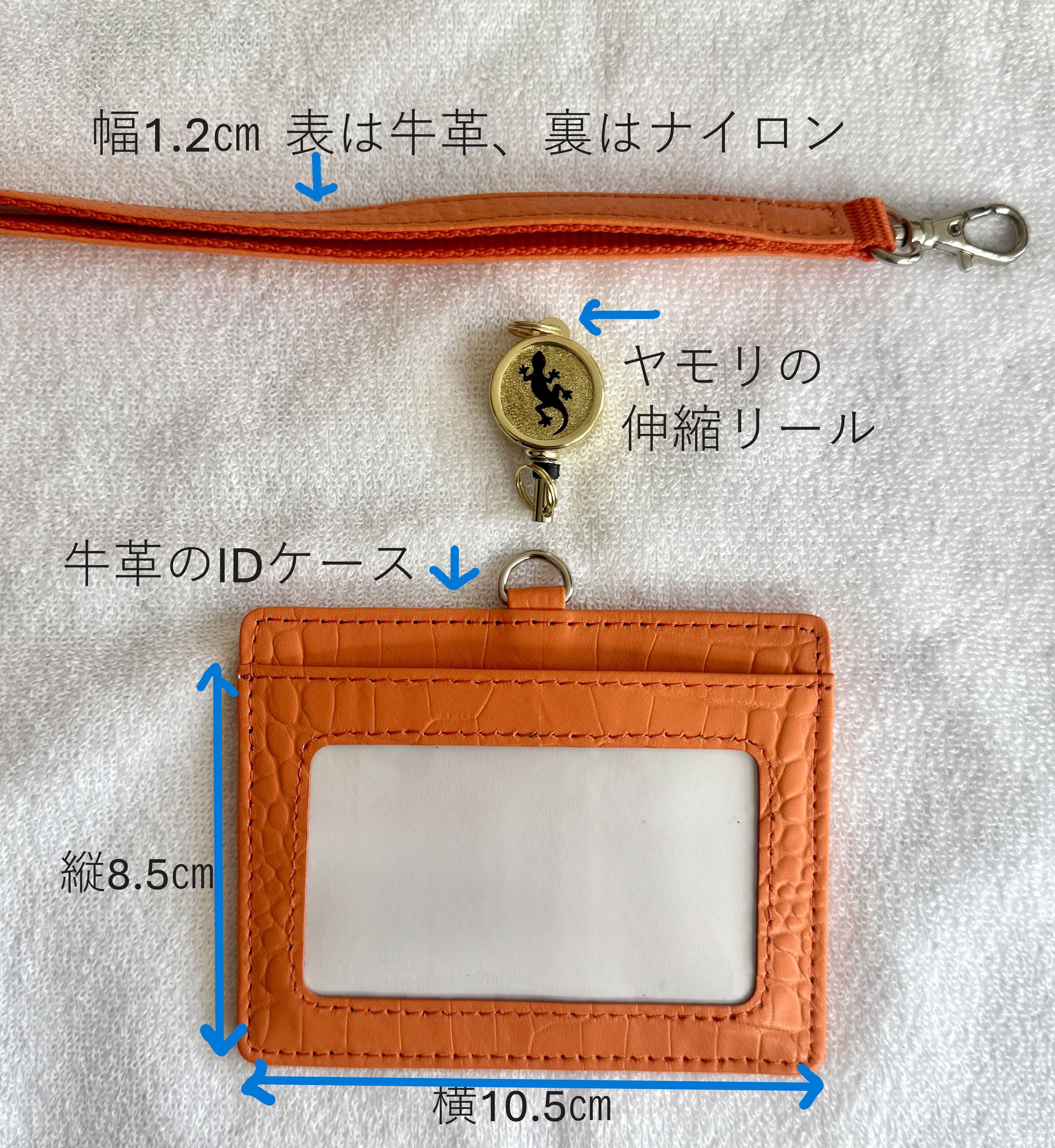 お得な3点セット(牛革製入館証IDケースとネックストラップと伸縮リール)